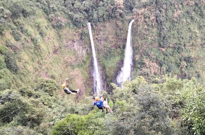 Tad Fane falls are an excellent site and sight. And the adrenaline junkies who ride the zipline across the 400 metres chasm of the falls provide a vicarious thrill for the coffee-sipping, safely ensconced spectators assembled near the departure platform with an excellent view of the zipline launch.