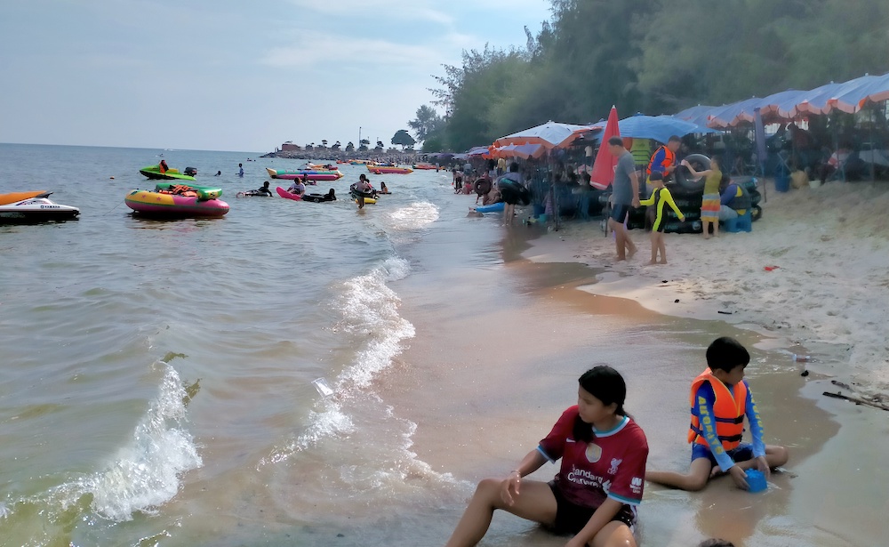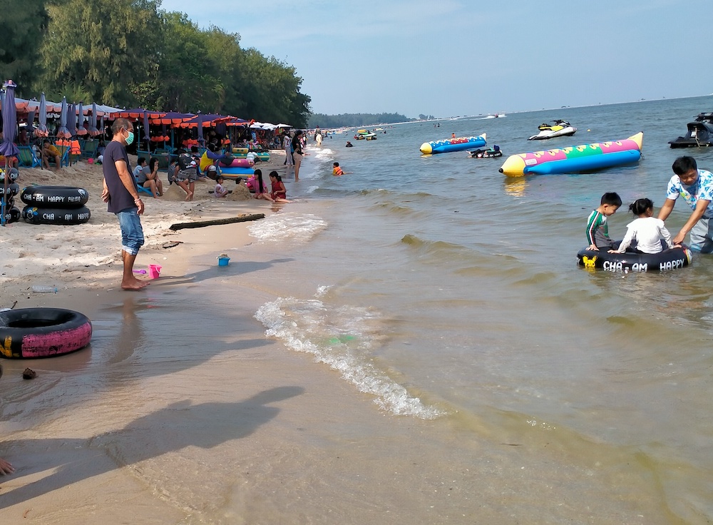 One hundred kilometre further south is the delightful Cha-Am Beach, a favourite with Thai families and pretty much undiscovered by Farangs.