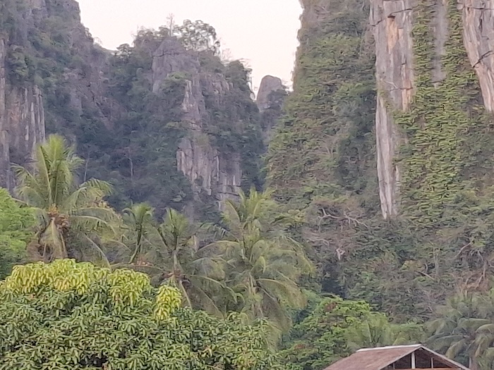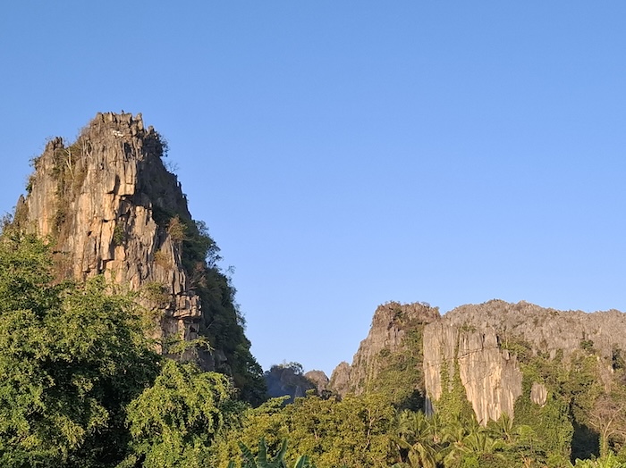 - The limestone karst towers over the village.