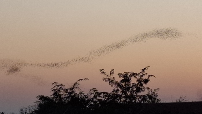Every evening at sunset, bats emerge from their caves in search of food. The liquid-like stream of flying mammals bursting forth from the caves is overwhelmingly comprised of the wrinkle-lipped free-tailed species of bat – although it is said there are other species roosting in the various caves.