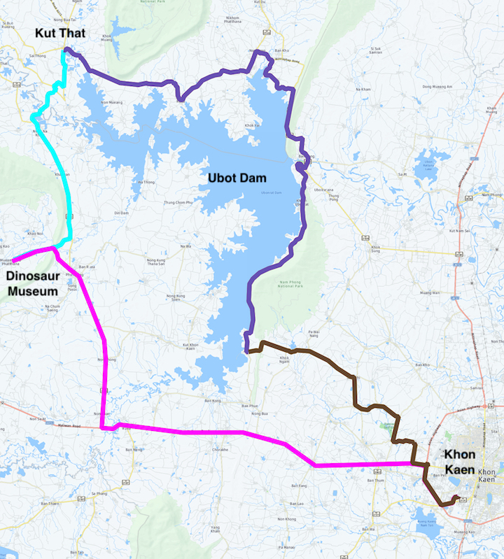 The Khon Kaen to Khon Kaen loop is about 240 kilometres.