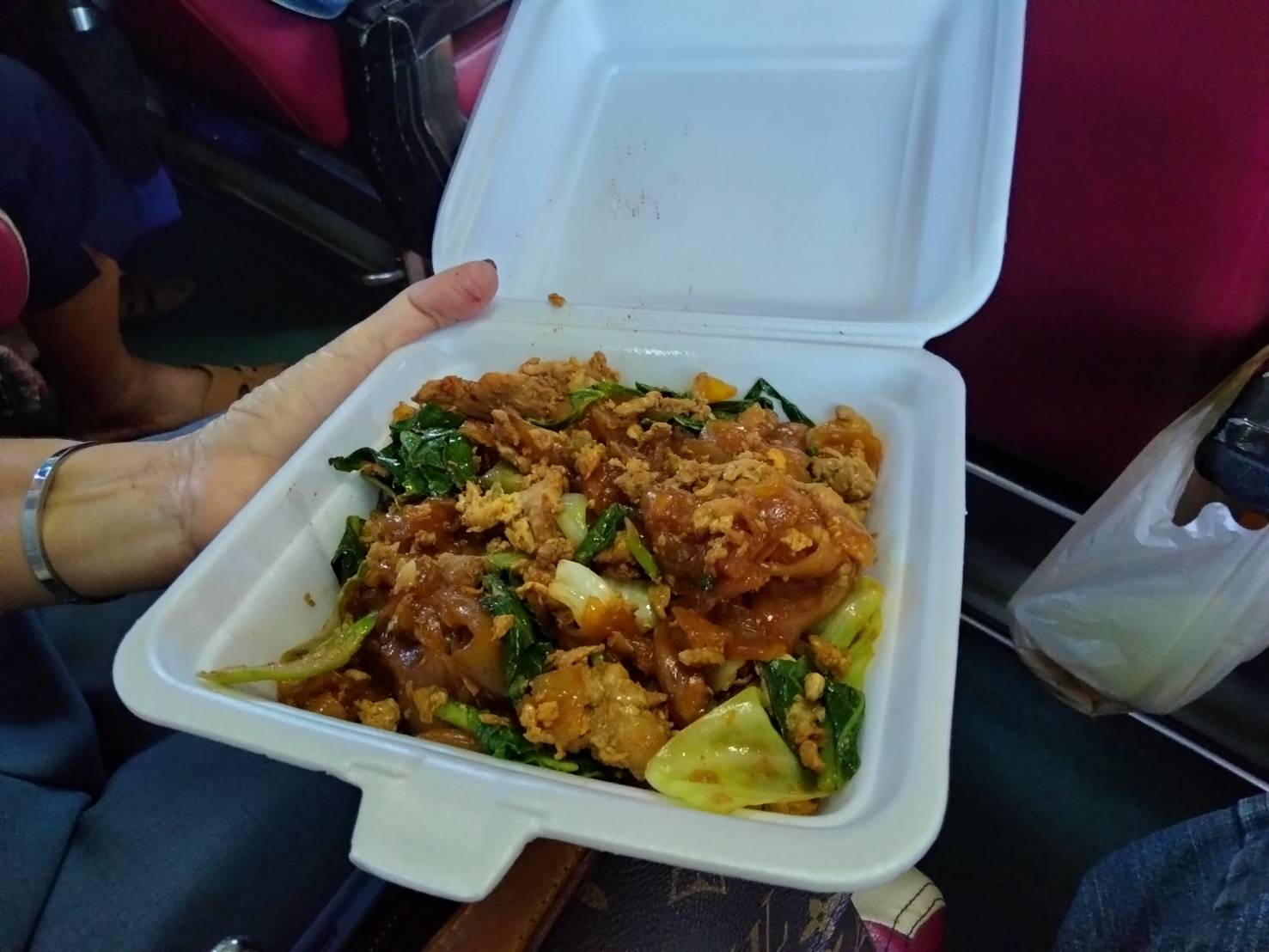 Not far past this junction it’s time for lunch. Hot food in styrofoam containers must be pre-ordered – 50 baht.