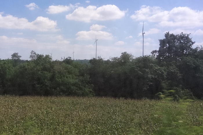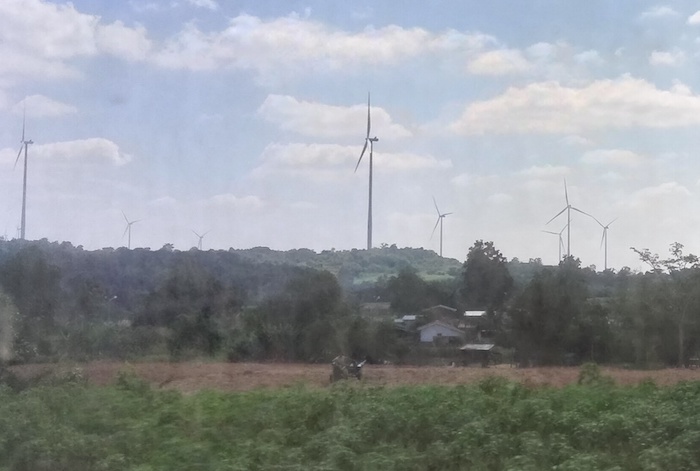 In the south-west of Chaiyapum Province the railway passes by a wind farm. It is one of a half dozen supposedly environmentally friendly sources of wind power in south-west Chaiyapum. The series of wind farms are generally aligned along the Phung Hoei Mountain Range, a rich wind resource.