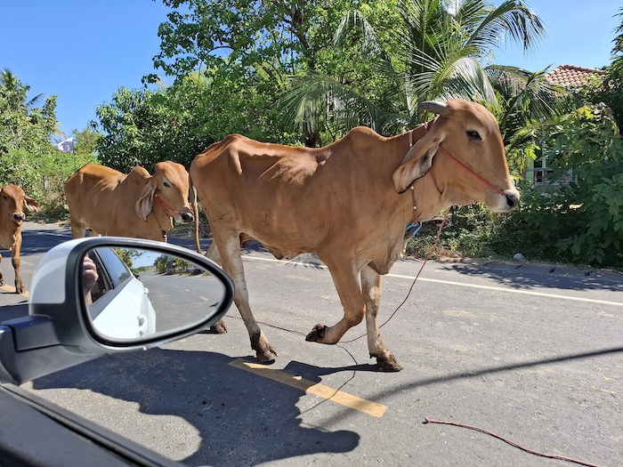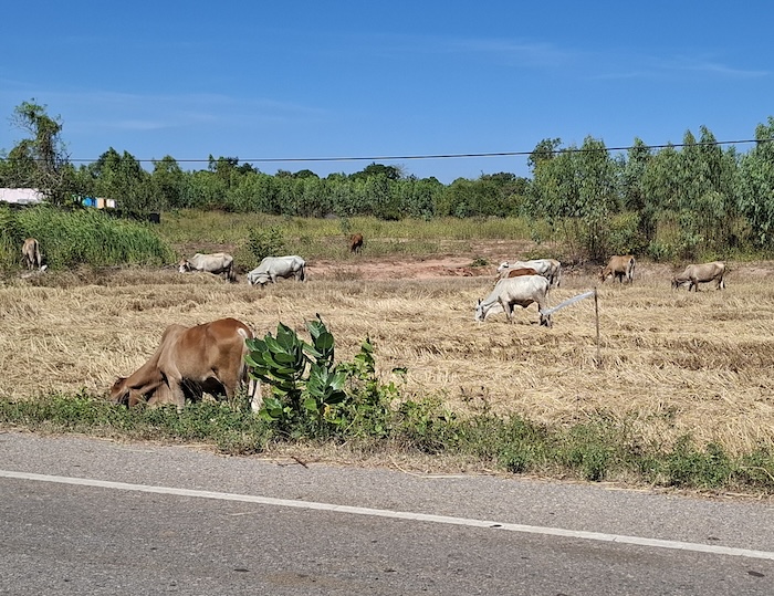 - Cattle on road between Ban Ku Ka Sing and Kaset Wisai.