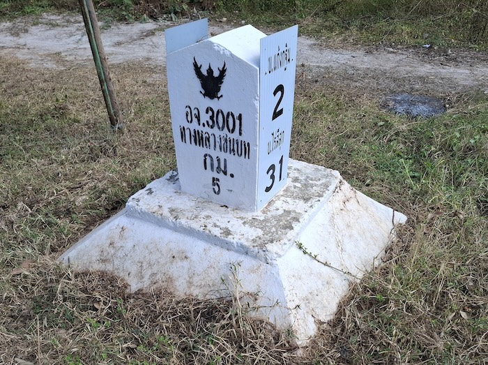- Distance marker on Rural Road 3001, Amnat Charoen. Two kilometres to Ban Na Mor Ma and 31 kilometres to Ban Rai See Suk.