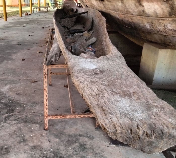 - Incongruously positioned dugout canoe type boat.
