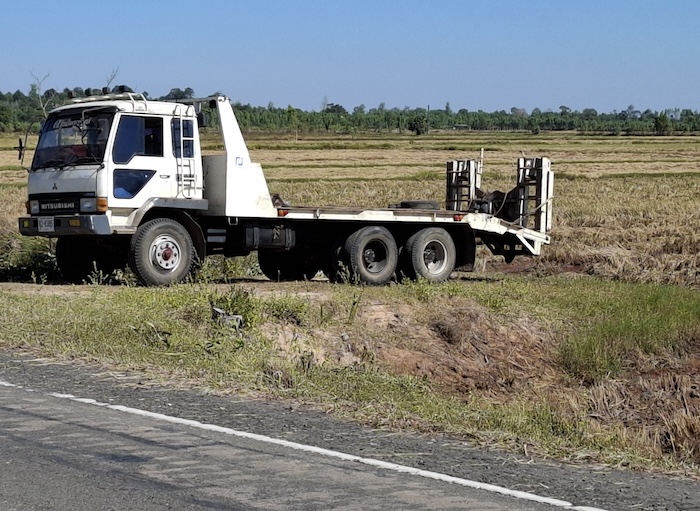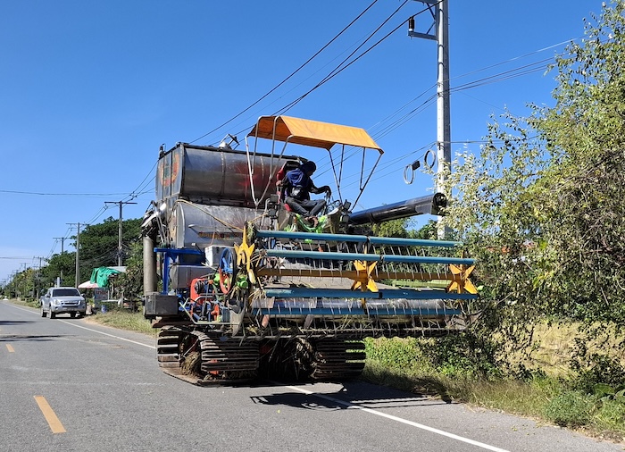 The practice of drying rice on public roads is something we have seen only in this part of Isaan.