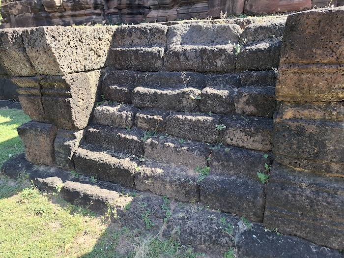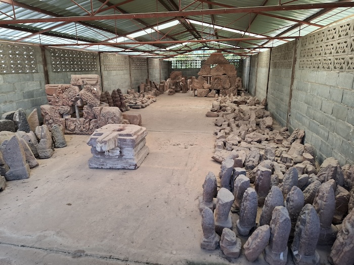 There is a placement of laterite and sandstone blocks at the northern side of the Prasat that will be used in future restoration.