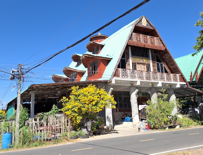 As we were leaving we noticed a house in the village of a very unusual design. Certainly not Thai style.