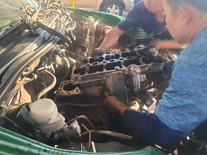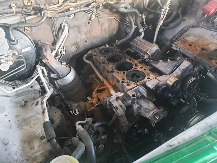 The excitement of the high speed (and probably gearbox-destroying) tow ended at the mechanic’s workshop where they immediately started pulling down the engine.