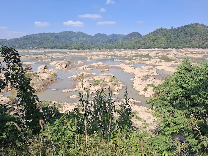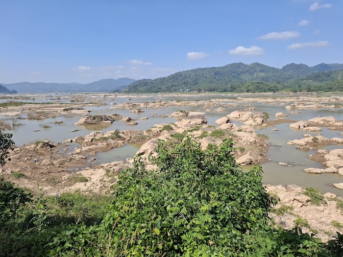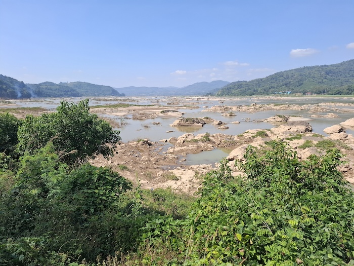 The river water level was low, exposing rock gardens from one side of the river to the other.