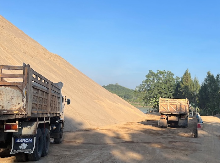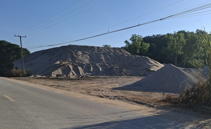 Between the Skywalk and the town of Chiang Khan there are a number of sand extraction operations. Sand/silt is dredged from the river and stockpiled along the road. There is a worldwide shortage of sand. Who knew!