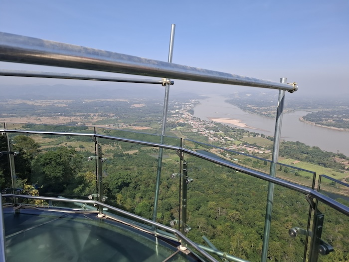 The Skywalk at Wat Pha Tak Suea was the first in Thailand, built in 2016 at a cost of ฿17,000,000. At the time of our visit in December 2024 the see-through glass floor was opaque making it, in effect, just a Viewpoint. Fortunately it was getting a badly-needed makeover that, hopefully, will restore the glass walkway. [December 2025 – replacement of the opaque glass floor didn’t happen during the refurbishment]
