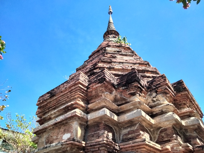 This wat is in the ancient city (inner city), conveniently located only metres from our accommodation. Unfortunately it is inside a school site behind bars and able to viewed only from the street and behind the bars that surround it. Put the camera inside the bars!