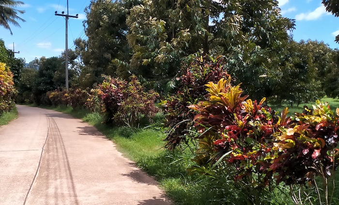 The route south from Aranyaprathet to Trat was through farming country close to the Cambodian border and included an off-bitumen adventure on a rough track through a durian farm.
