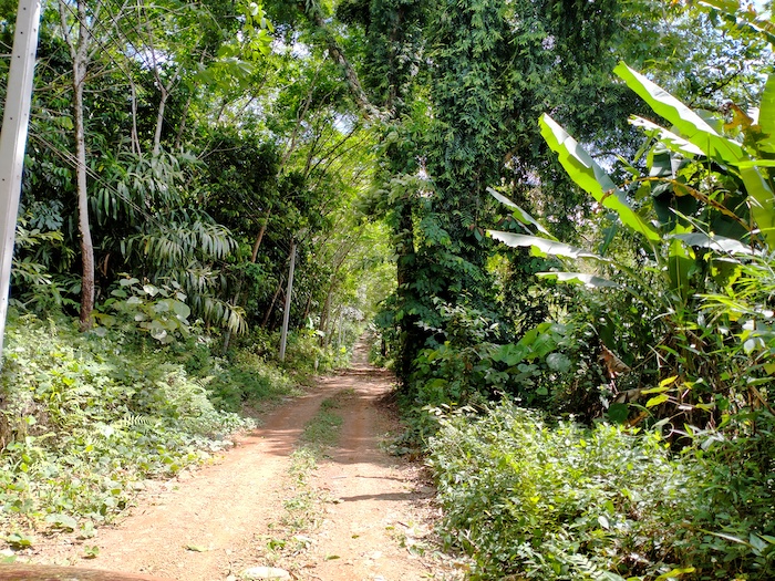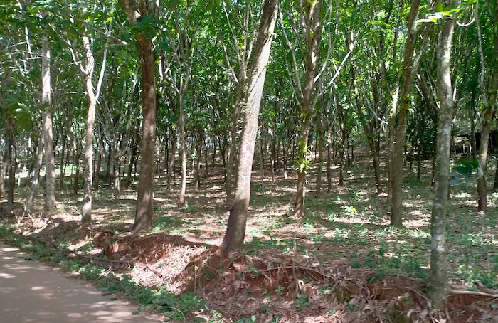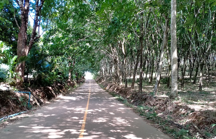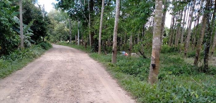- Through a rubber plantation.