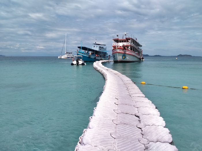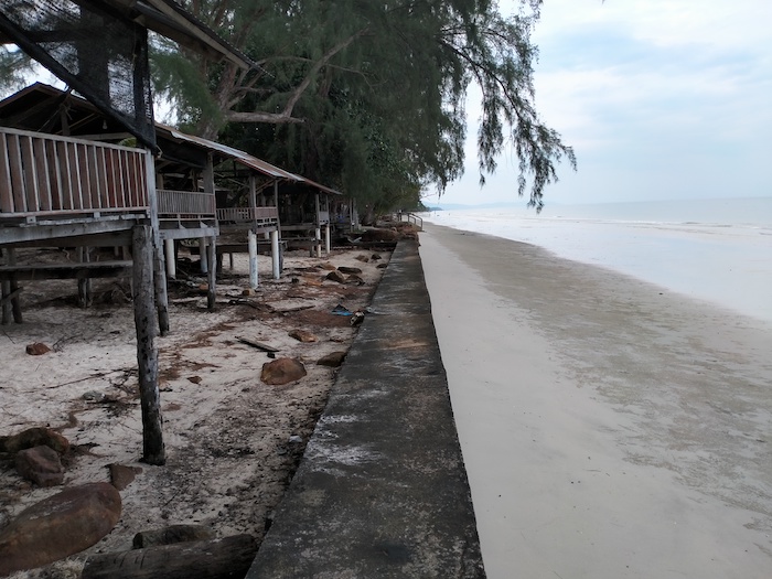 - Shallow water at Koh Rung necessitates boats anchoring many metres off shore.