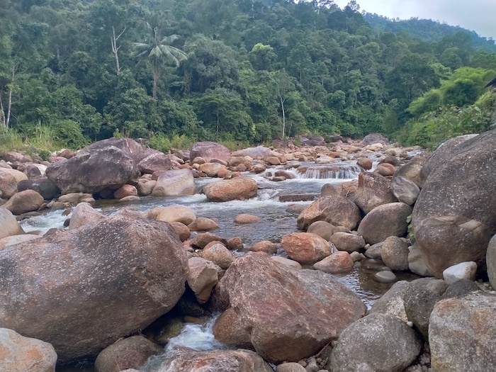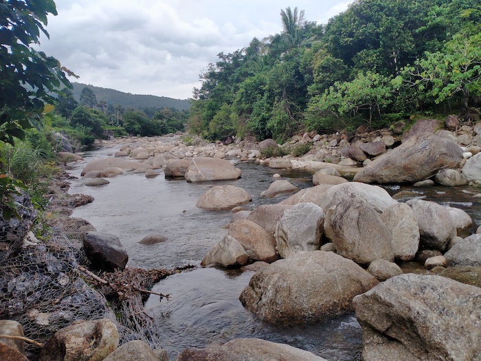 We departed from Tangsurat and within 12 kilometres were presented with the challenge of crossing the Bang Nan River. The road we took ended at a locked gate across the road on the south-east bank of the river. We returned to Bang Nan, interrogated the locals and ascertained how to get across the river. Easy, really. But no signage.