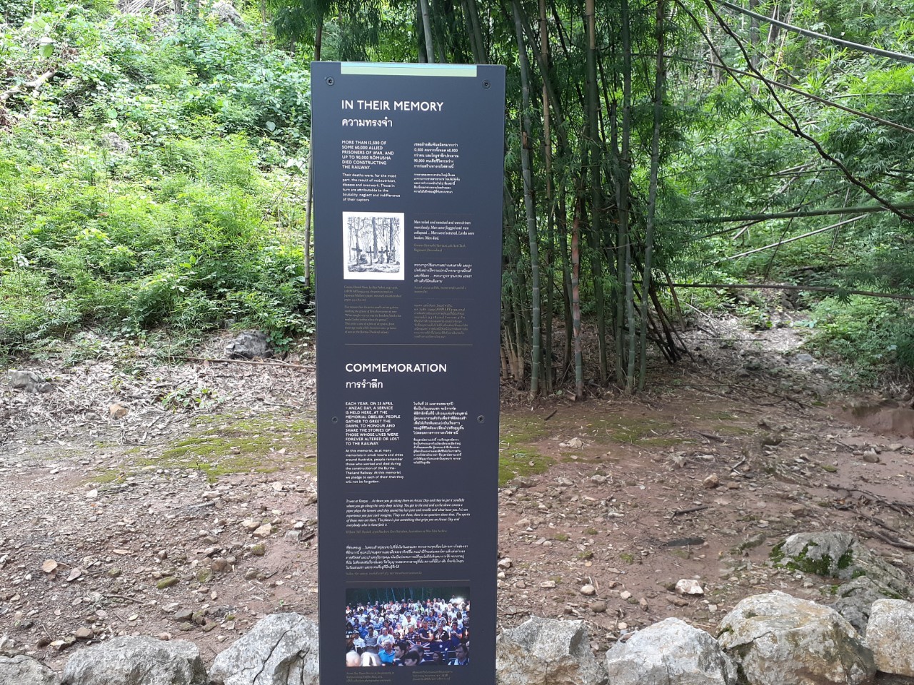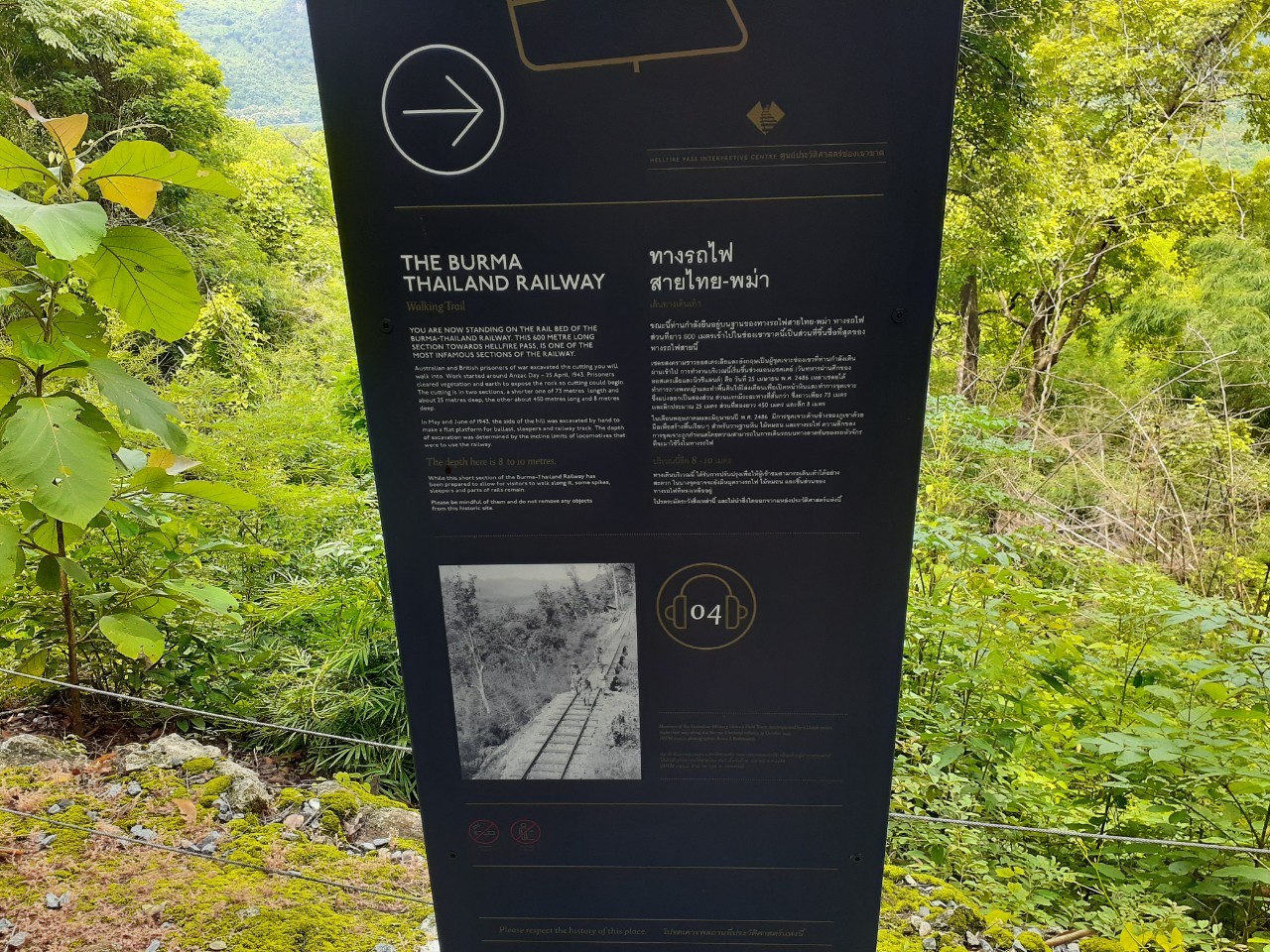 The Hellfire Pass Interpretive Centre and Memorial Walking Trail is located just above Hellfire Pass (Konyu Cutting). It was built and is maintained by the Australian Government. It was refurbished in 2018 and in the process many of the diaromas, photographs and information boards were removed or sanitised.