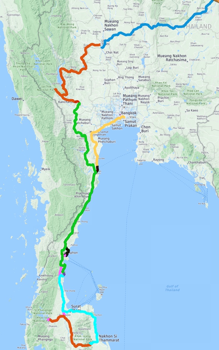 Our route took us through Nakhon Si Thammaret and as we turned north towards Surat Thani we hugged the coast.
