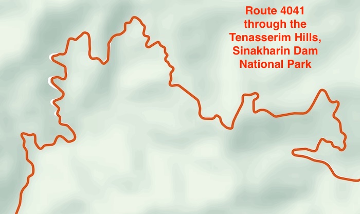 We made the drive up the mountains of Sinakharin Dam National Park along Route 4041. A truly fearsome drive through driving rain, fog/low cloud, twisting, turning roads with landslips on blind bends. Some of the debris on blind bends forced us onto the wrong side of the road. We encountered only three vehicles which, while it made driving safer on the blind bends, wasn’t comforting contemplation in case of a breakdown, obstacle on the road or some other issue. It was dark mid-afternoon. Not a good place to have anything go wrong.